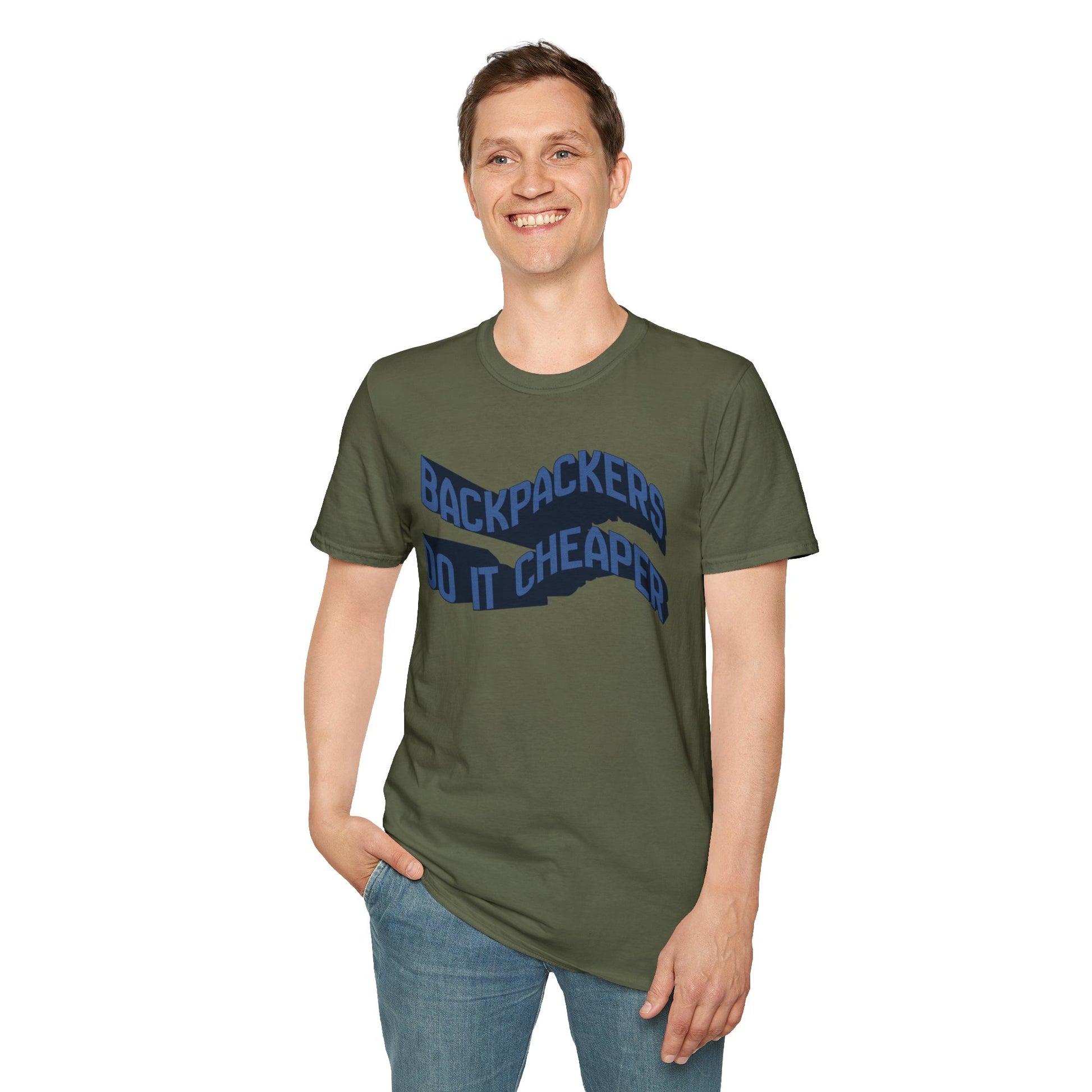 Wavy "Backpackers Do It Cheaper" Graphic T‑Shirt — Budget Travel Quote Tee